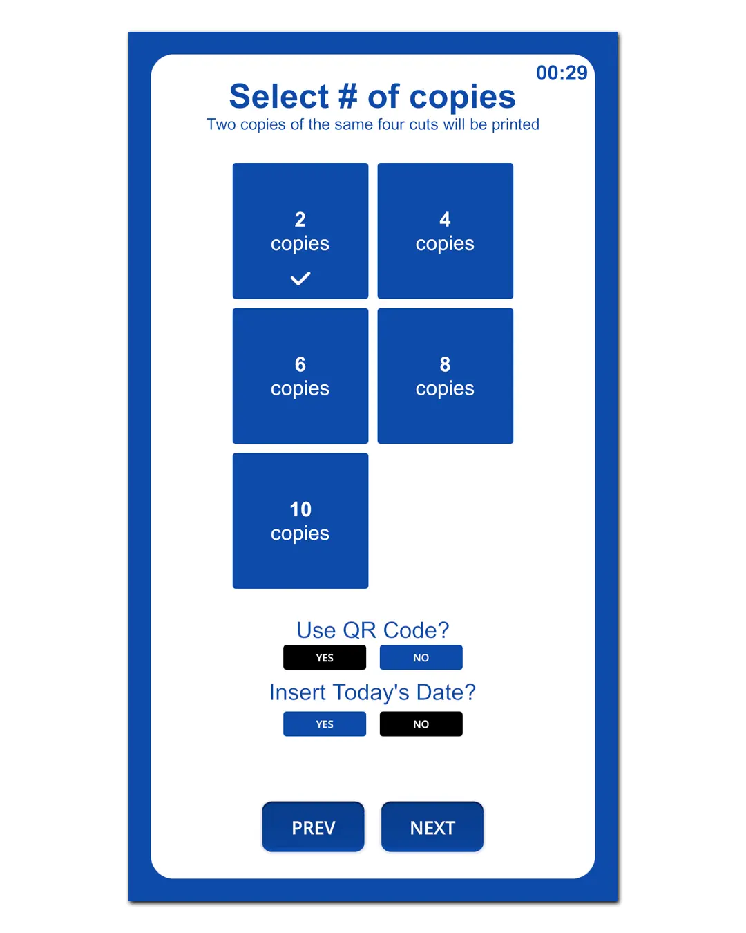 Switch between self-service kiosk mode (mall/store) and events mode depending on your setup.